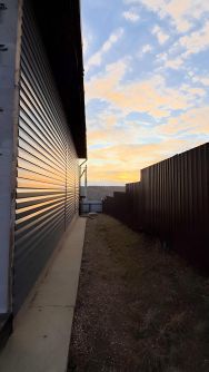Участок огорожен забором из металлопрофиля. Дом из газобетона автоклавного (байкальский бетон, г. Саянск, ширина 40 см.) 3 сейсмопояса, автоматические ворота в гараж. Северная сторона (боковая) обшита металлосайдингом, лицевая и задняя не обшивались по причине планирования пристроя дополнительно веранды и терассы. Выход на терассу из дома.