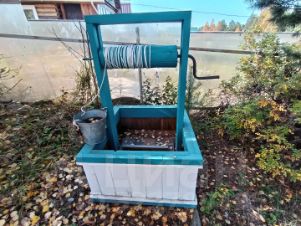 Есть фундамент под гараж. На участке имеется действующий колодец.
