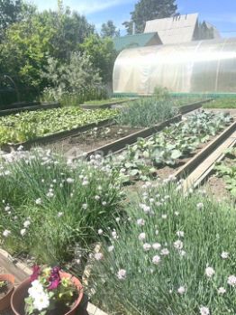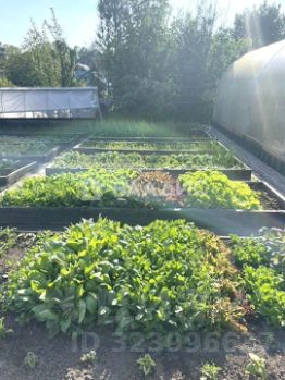 Плодово-ягодные насаждения, огородные грядки, большая теплица.