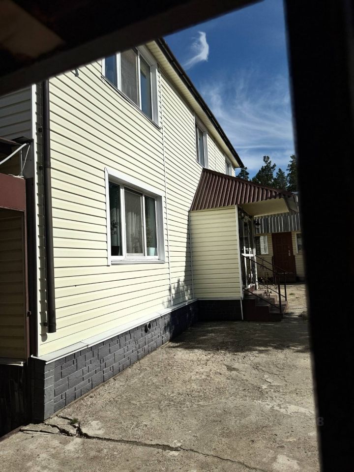 - Тип конструкции: Брусовой двухэтажный дом, облицованный сайдингом, придающим зданию современный вид.