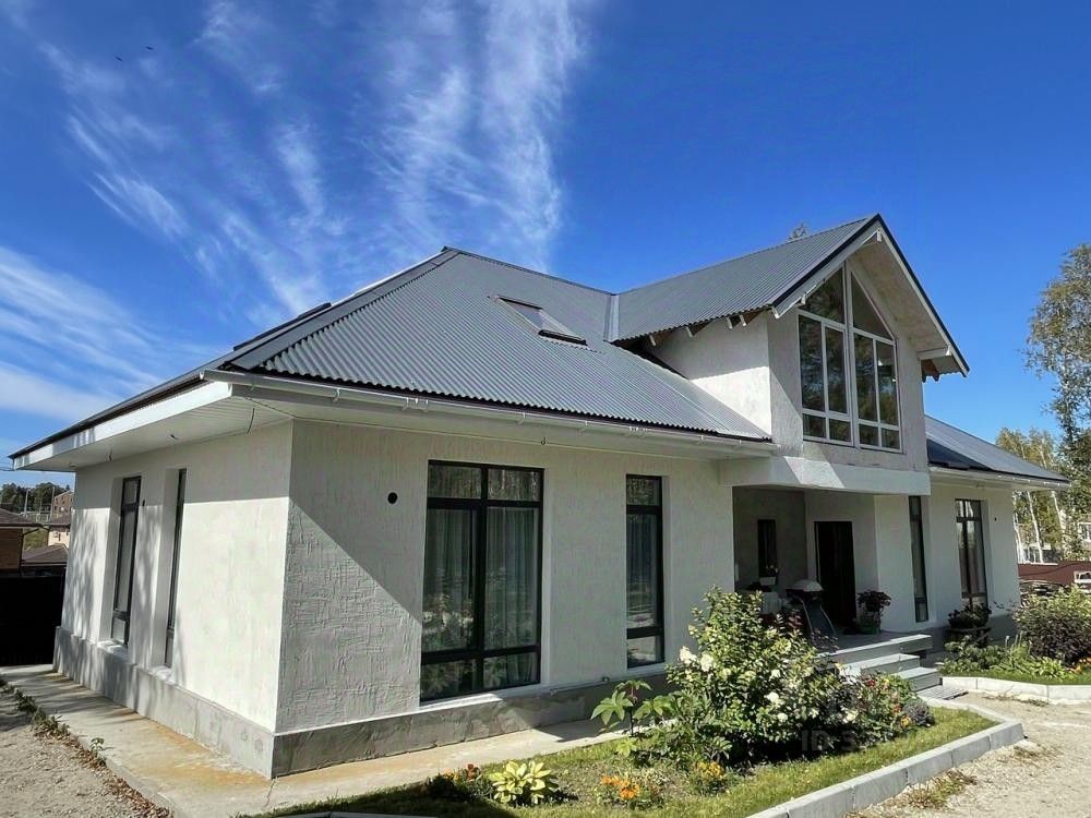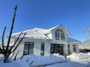 Капитальный 2 этажный дом 308 кв м / фундамент свайно-ростверковый (буро-набивные сваи) + монолитная ж/б плита пола / первый этаж : стены из 1,5 кирпича + утеплитель напыляемый ППУ (ПеноПолеУретан) + штукатурка + декоративная штукатурка короед / перекрытия 18 брус // второй этаж стены 18 брус 4 уровня / крыша мансардного типа - утеплитель ППУ / металопрофиль