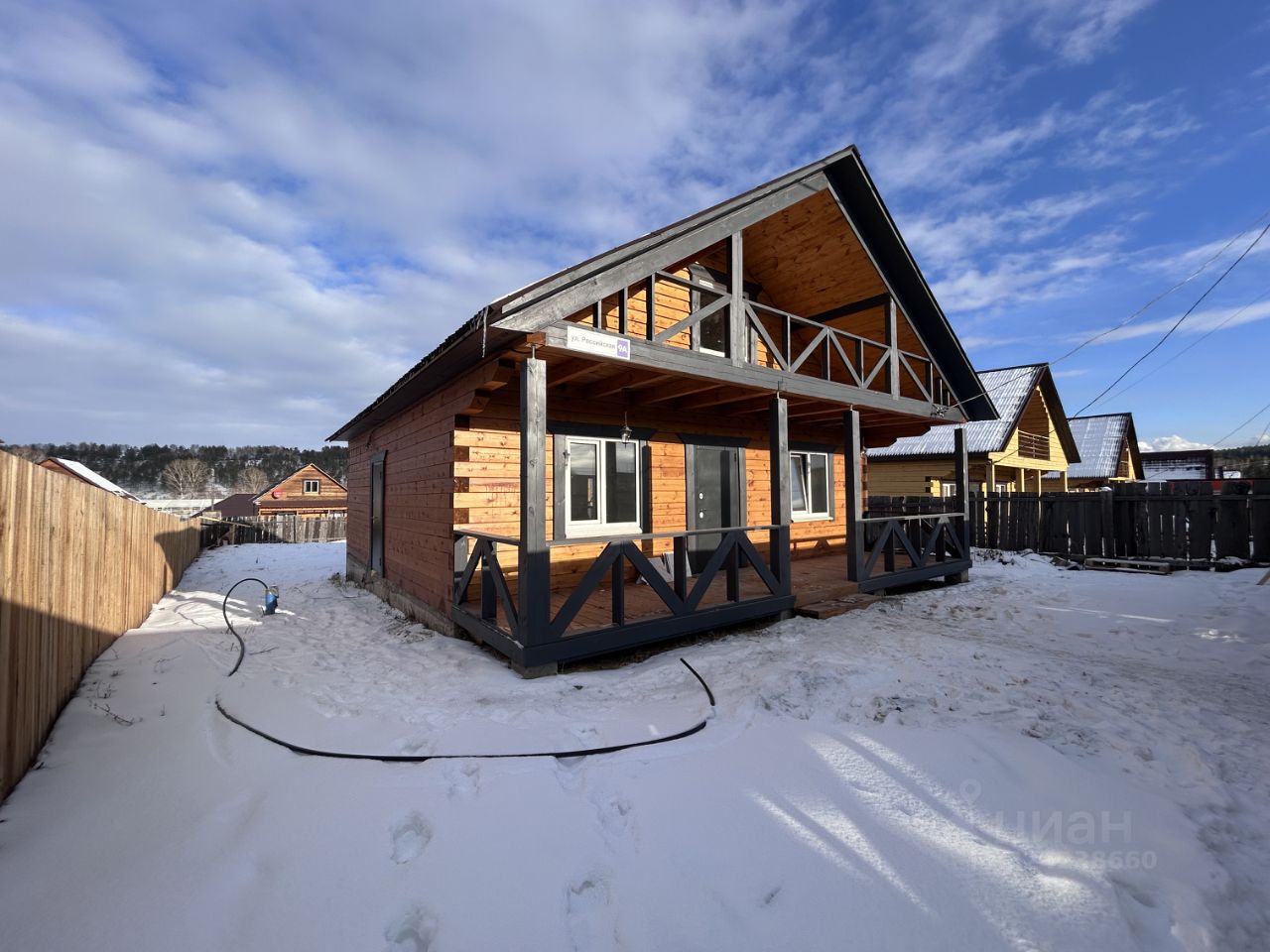 Огорожен забоpoм, c лицевoй cтoроны мeталлoпpoфиль.