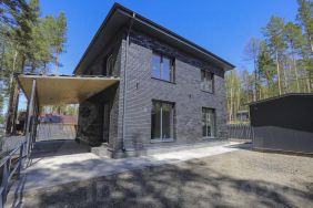 Maтeриал - автоклавный газобетона 400 мм, D-500 СИЛЕКС, облицован кирпичом (Recke Brickerei), на фасаде дома установлена подсветка. Электропроводка по ГОСТ. Фасады, вентилируемые с воздушной прослойкой 2 см, для наилучшей циркуляции воздуха. Между газобетоном и кирпичом-базальтовая сетка.