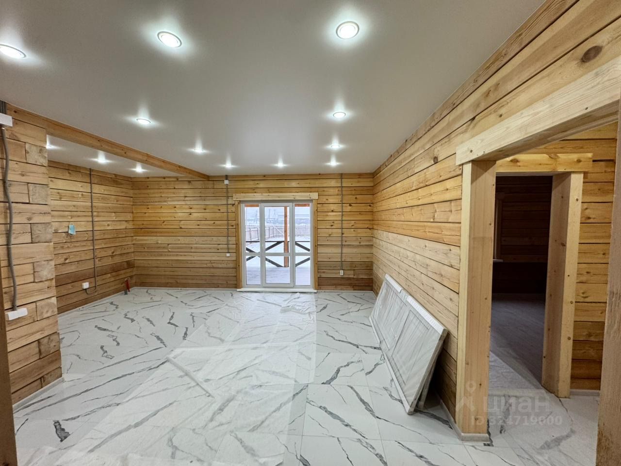 Отделка: Потолок натяжной с точечным освещением.
