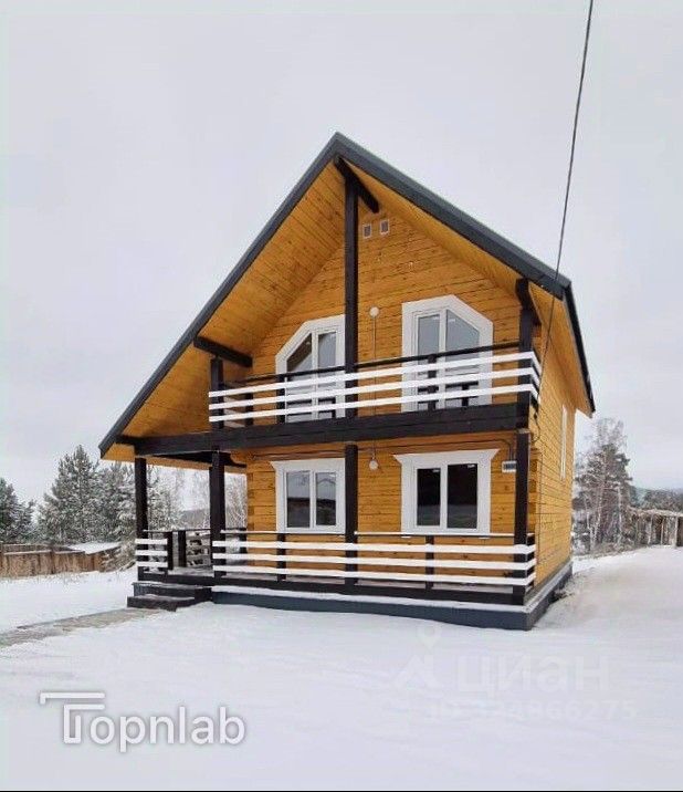 В доме - кухня-гостиная, четыре спальных комнаты, два санузла, лестничный марш, терраса и балкон.