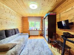 Дом находится в 7 минутах ходьбы от остановки,приятный бонус-дом у леса,соседи только с одной стороны.