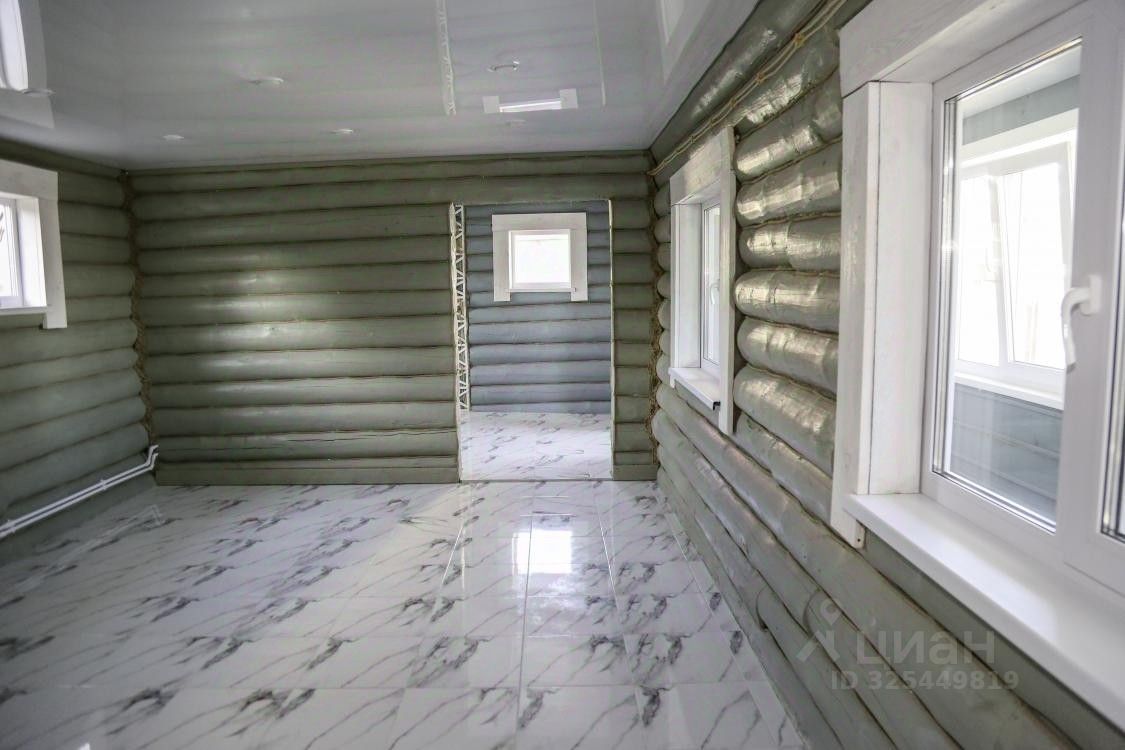 Отделка. Элегантные натяжные потолки во всех помещениях. Оригинальный дизайн кухонной зоны и столовой: сохранено круглое бревно с покраской и оттделкой жгутом. В остальных помещениях отделка материалами из дерева, на полу ковролин.