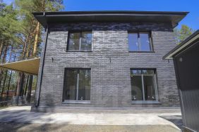 Maтeриал - автоклавный газобетона 400 мм, D-500 СИЛЕКС, облицован кирпичом (Recke Brickerei), на фасаде дома установлена подсветка. Электропроводка по ГОСТ. Фасады, вентилируемые с воздушной прослойкой 2 см, для наилучшей циркуляции воздуха. Между газобетоном и кирпичом-базальтовая сетка.