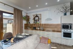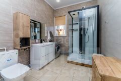 В доме установлен хороший котел, по всей площади теплый пол. Дополнительно в гостиной есть дровяная печь, которая придает атмосферность зимним, семейным вечерам. Окна имеют расширенный проем, высокие потолки в совокупности с гостиной выход на террасу.