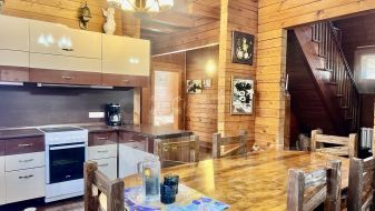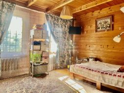 Новым собственникам в подарок остается деревянная мебель (стол, стулья, кровати) все в едином стиле, кухонный гарнитур и частично бытовая техника.