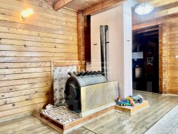 В доме имеются все коммуникации: электричество, вода (городская), выгребная яма на 6 кубов (не откачивали ни разу, все уходит самостоятельно). В каждом санузле свой водонагреватель. Отопление бойлер + твердотопливный котел (расположен в цоколе дома) и печь в гостиной дома (на всякий случай). Во всем доме чугунные батареи отопления, зимой тепло, а чек на отопление в 2 раза меньше, чем в квартире.