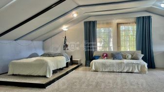 Дом в два этажа, грамотно спланирован. В правом крыле первого этажа две спальни, гардеробная, санузел с душевой кабиной. В центре дома кухня столовая и большая гостиная. Важный момент, который часто требуется в доме, вход в холл через прихожую, а это значит, что зимой прохладный воздух напрямую не заходит в дом, плюс в этой зоне отлично умещается хранение верхней одежды и обуви. В левом крыле две спальни, санузел с ванной и вход в баню (баня не облагорожена), второй вход в дом. На втором этаже огромная спальня и место для чила.