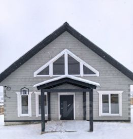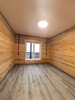 Дом общей площадью 100 м² выполнен из экологичного бруса.