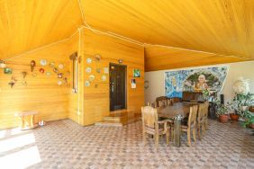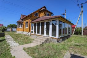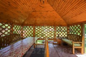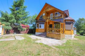 На участке расположена баня для релаксации, а также большая беседка для приятного времяпровождения на свежем воздухе. Дом имеет огромную террасу с панорамными окнами, откуда открывается прекрасный вид на окресности.