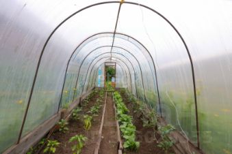 На территории участка расположены баня и теплицы, позволяющие использовать дачу для отдыха и выращивания урожая.