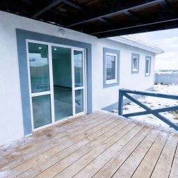 Планировка: 3 комнаты , кухня-студия с выходом на большую, просторную террасу), ванная комната ( оснащена раковиной, унитазом, ванной).В доме теплые водяные полы.