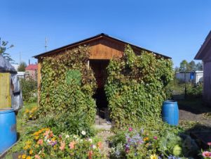 На участке 6 соток, кроме дома, есть баня, беседка, теплица. (и контейнер для хранения инструмента).