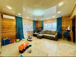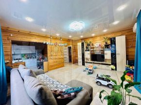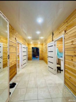 В доме установлена натяжная потолочная система с точечным освещением. в сан.узле установлен санфаянс, на полу керамическая плитка.