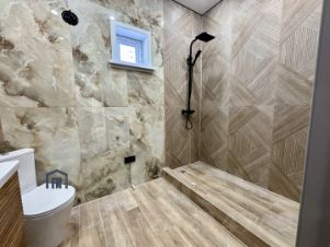 Натяжные потолки с точечным освещением, напольное покрытие: керамогранит и линолеум, санузел, полностью отделан качественным керамогранитом, с установленным санфаянсом, стены отделаны штукатуркой, полностью готовы к поклейки обоев или покраске, по всему дому установлены межкомнатные двери, во всех комнатах в доме сделана вентиляция.