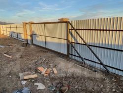Участок прямоугольной формы, огорожен забором.
