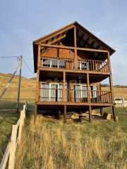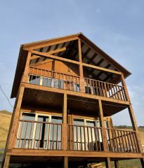 Продам двухэтажный Дом с панорамными окнами и террасами на каждом этаже. Дом находится в самом поселке Сахюрта, Шикарный панорамный вид из окна! Материал стен: брус. Окрашен снаружи и внутри. Скважина 80 м, септик, батареи электрические. Общая площадь 41,8 м2, площадь каждой террасы 18 м2. Участок 12 соток.