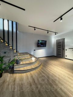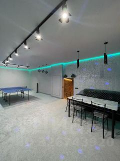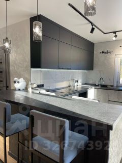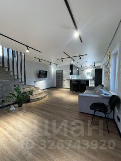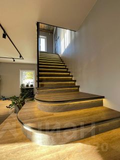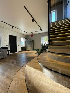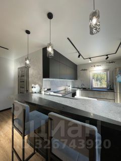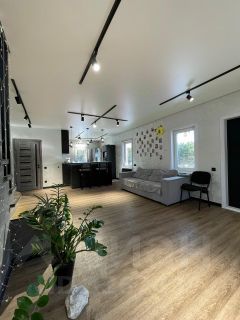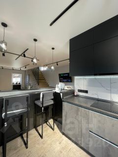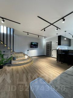 На первом этаже расположена стильная кухня-гостиная с барной стойкой и обеденной зоной, просторная зона отдыха для сбора больших компаний . Интерьер выполнен в светлых тонах, что придает помещению теплоту.