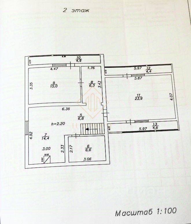 Второй этаж: три большие комнаты, санузел-10 кв.м., три остеклённых балкона по периметру.