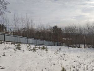 Участок 10 соток с деревьями, которые формируют живую изгородь и отгораживают участок с одной стороны с весны по осень.