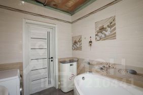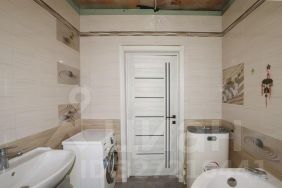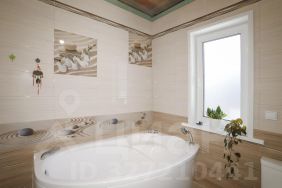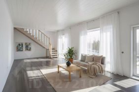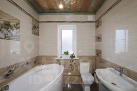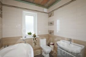 Внутренняя отделка включает обои на стенах, ламинат на полу.. В ванной итальянский керамогранит премиум на полу, плитка с панно на стенах. Лестница из массива натурального дерева.