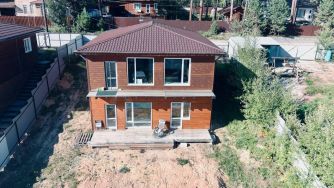 - Первый этаж из газобетона, второй из бруса.