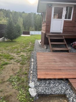 Участок огорожен забором на жб фундаменте. На участке два въезда.