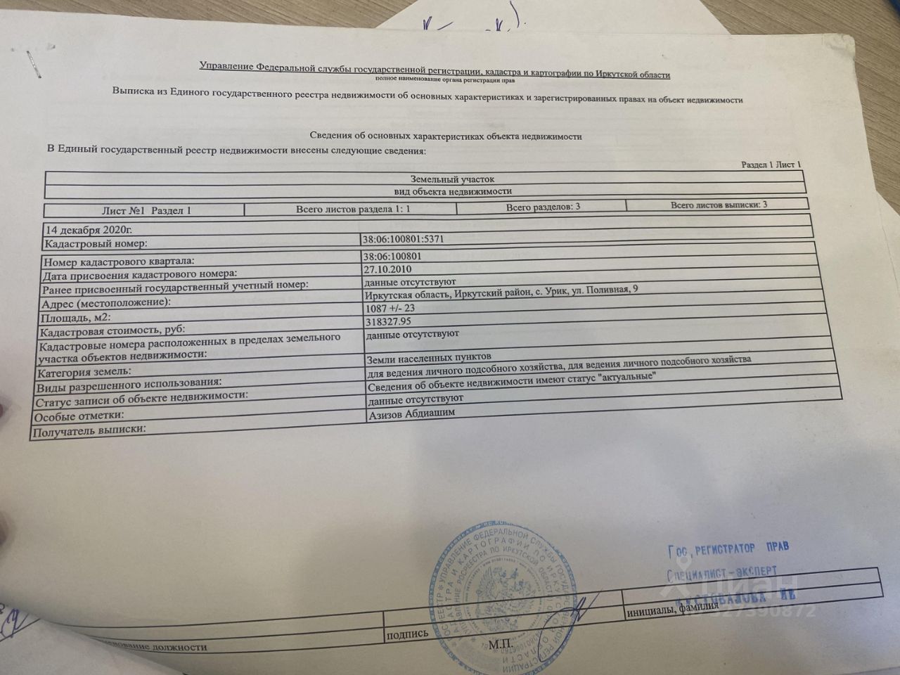 Земельный участок в селе Урик, улица
