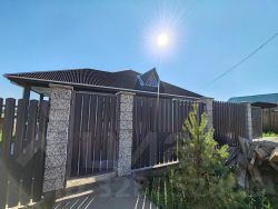 По периметру дома стильные светильники для вечернего освещения, на крыше водостоки, перед домом залиты тропинки из бетона, а также отмостка вокруг дома. По фасаду хороший забор евро штакетник, ворота на пульте откатные.