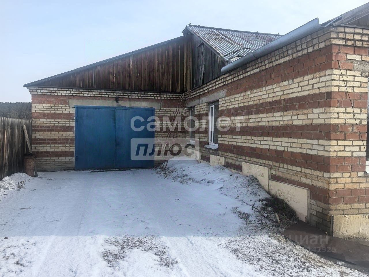Дом построен из кирпича в 1992 году, настил крыши выполнен из профлиста, ленточный фундамент, бетонные отмостки по периметру дома. К дому пристроен гараж, имеется подполье из кухни, погреб из сеней.