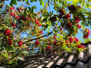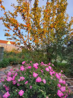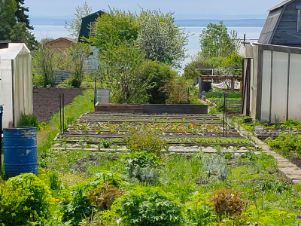 Участок разработан. Забором не огорожен. На участке много насаждений много цветов, клубника, смородина черная, красная, белая, крыжовник, жимолость садовая и дикая, облепиха, яблоня садовая и дичка, груша, черемуха, слива, калина, рябина, сирень, шиповник, малина, вишня, ирга, береза, голубая ель.