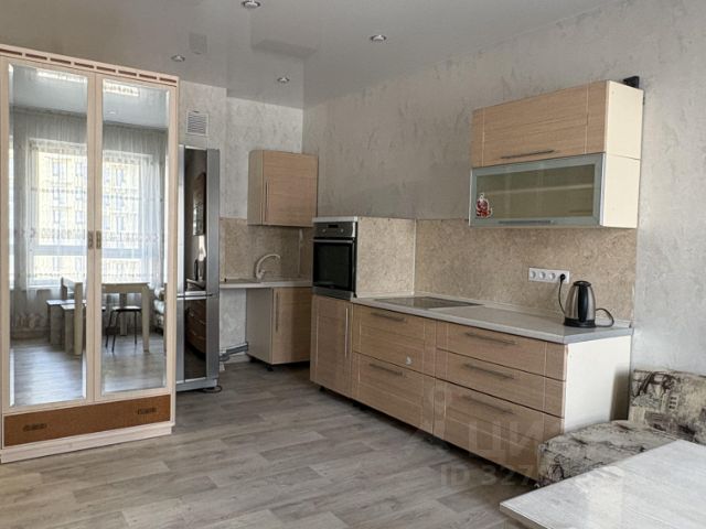 Сдается Большая студия на длительный срок, холодильник, микроволновка, плита, стиральная машина, диван, вся необходимая мебель имеется. Два спальных места, красивый вид с окна. Квартира Новая, все новое. Электричество и вода оплачивается отдельно по счетчикам. Фото соответствуют, квартира реальная. Собственник. Залог 10990 рублей.