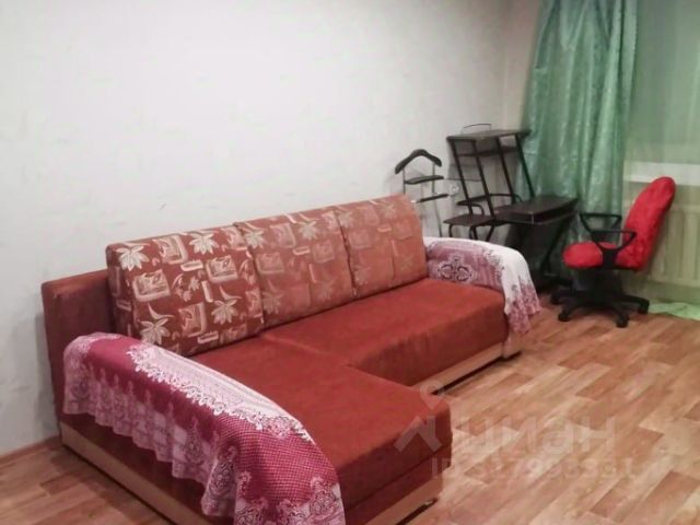 Есть утюг, гладильная доска, пылесос. В комнате диван ( раскладывается в спальное место ), комод, панорамное окно добавляет пространства.