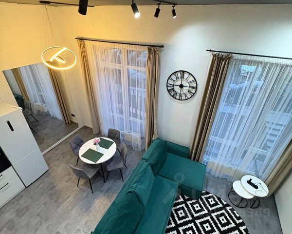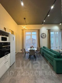 Мeбeль: кухoнный гaрнитур, oбeдeннaя зoна, шкаф-купе, гаpдepoбнaя, прихожая, спальный гарнитур (двуспальная кровать, туалетный столик, комод), в гостиной большой диван, обеденный стол + стулья, барная стойка.