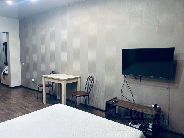 Просторная студия в новом доме! Отличный ремонт! Мебель и бытовая техника есть вся, огромный зеркальный шкаф-купе в прихожей, плазма, кинотеатр. Фото соответствуют! К оплате плюс свет, вода по счетчикам.