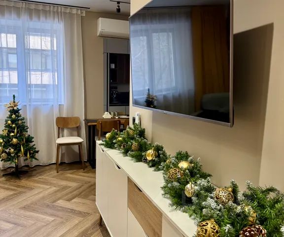 Кухня Кулинарное Вдохновение: Здесь есть всё, чтобы вы могли воплотить свои кулинарные идеи: электрическая плита, холодильник, чайник, микроволновая печь, полный набор посуды и столовых приборов. Приятный бонус: базовый набор продуктов (рис, гречка, подсолнечное масло, соль, сахар, перец, ароматный кофе и 2 вида чая) уже ждет вас не нужно беспокоиться о мелочах по прибытии! А уютный диван станет дополнительным спальным местом для 1-2 человек. Для вашего досуга современный ЖК-телевизор и высокоскоростной wi-fi